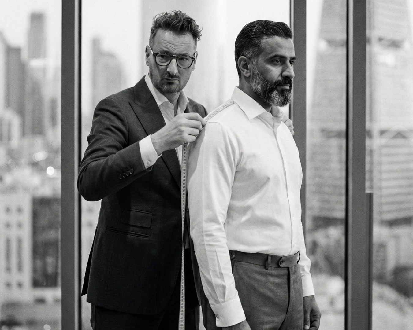 You’ll meet with one of our master stylists - in your home, office, or at our studio - who will take the time to understand your needs, whether you’re preparing for a wedding, a career milestone, or simply elevating your style. Together, we’ll explore fabrics, cuts, and details tailored to reflect you.